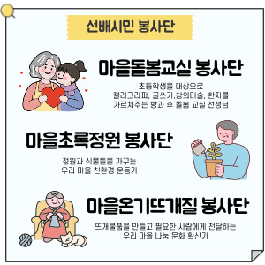 우리 지역의 문제에 관심을 갖고 해결하고, 다음 세대인 후배시민을 돌보는삶의 지혜와 역량을 가진 어르신 봉사자 '선배시민'을 모집합니다...