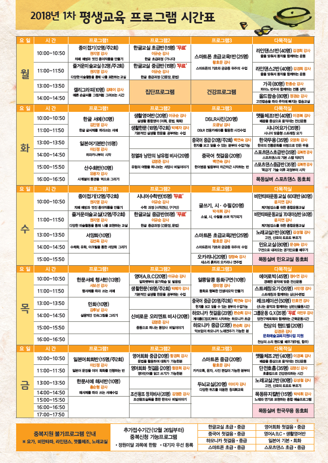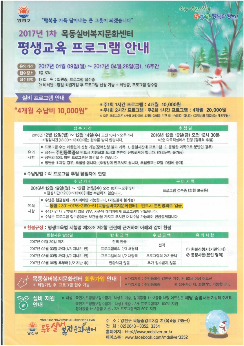 2017년 1차 목동실버복지문화센터 평생교육프로그램 안내