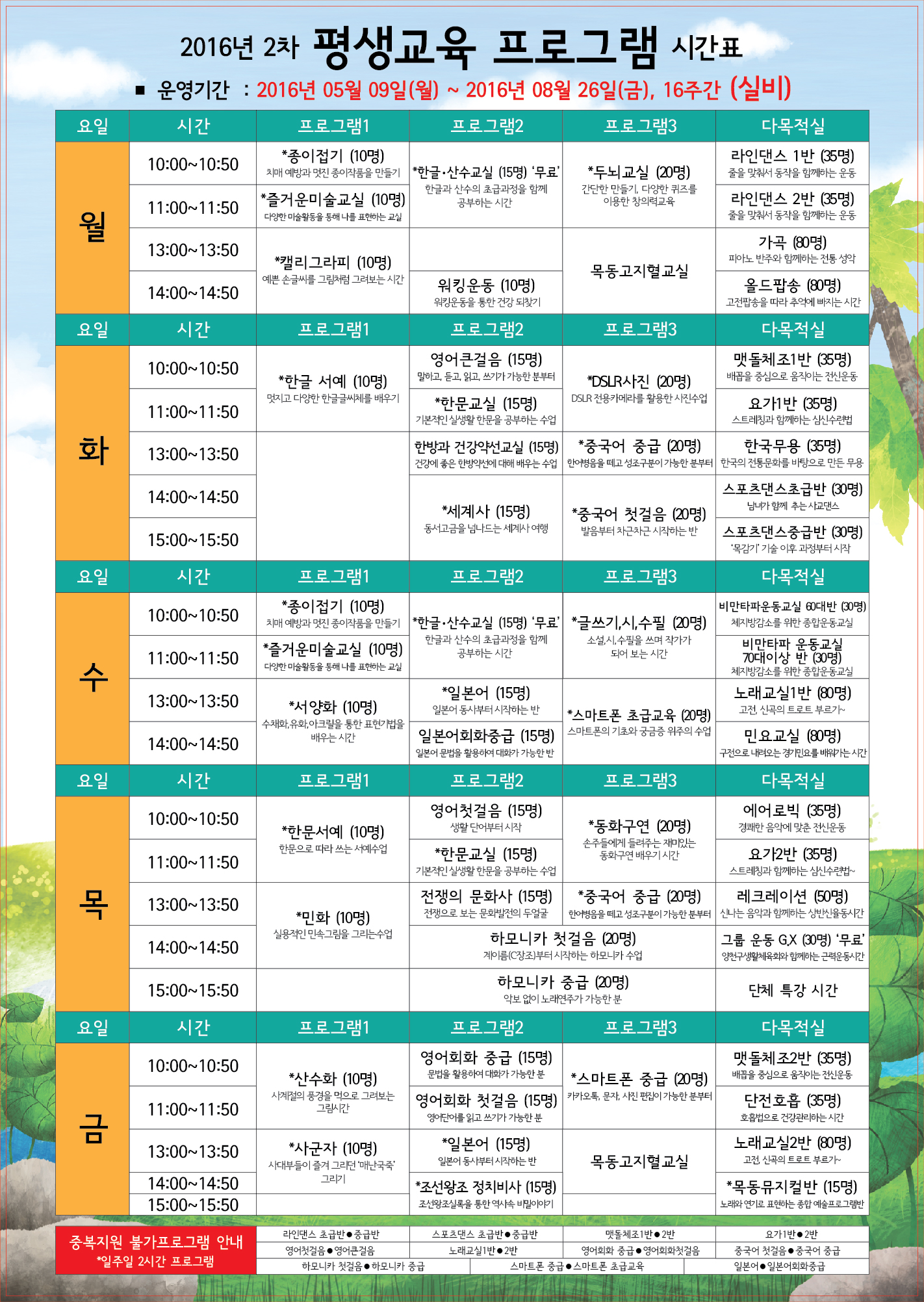 2016년 2차 목동실버복지문화센터 평생교육프로그램 안내