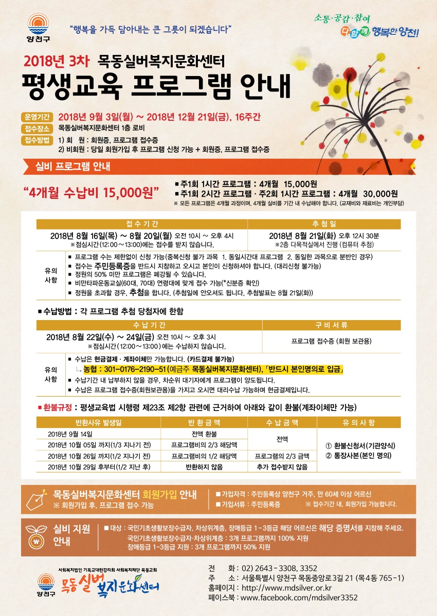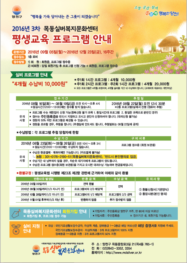 2016년 3차 목동실버복지문화센터 평생교육프로그램 안내