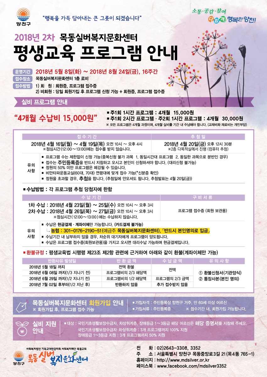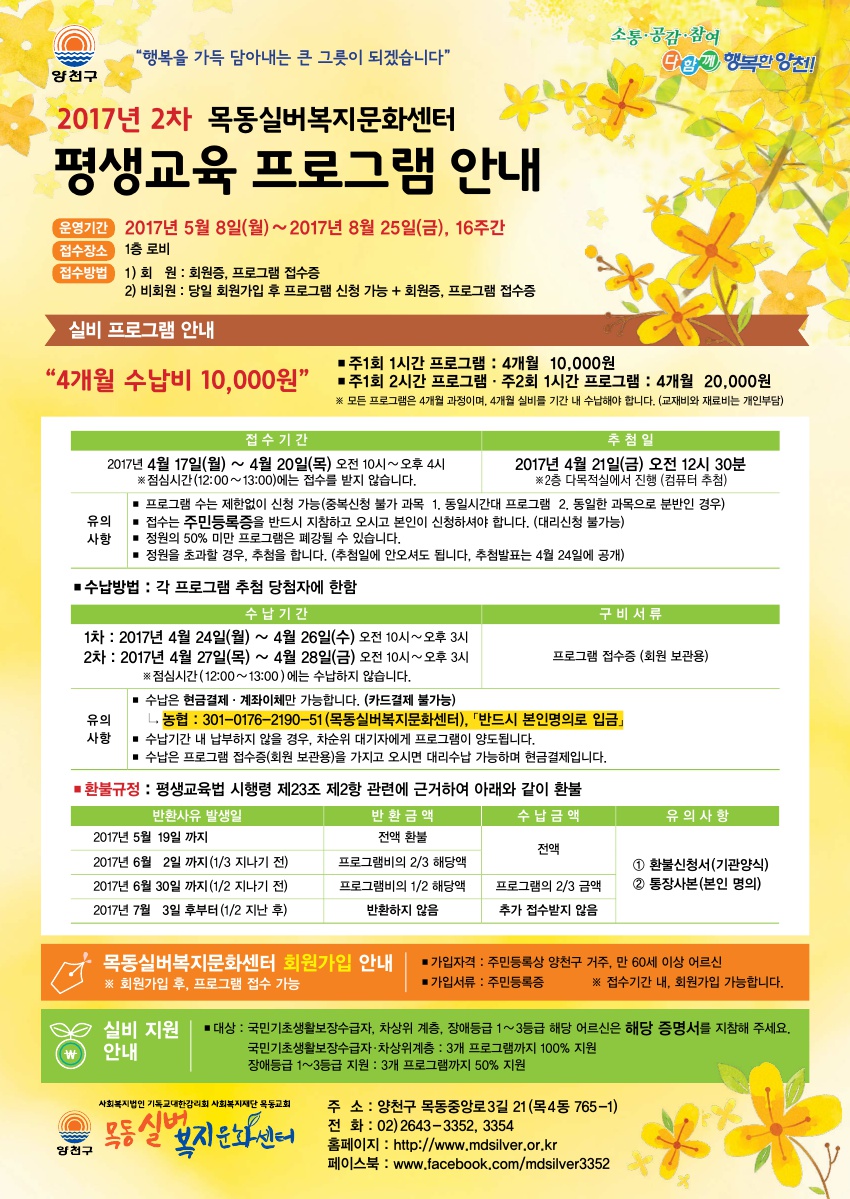 2017년 2차 목동실버복지문화센터 평생교육프로그램 안내