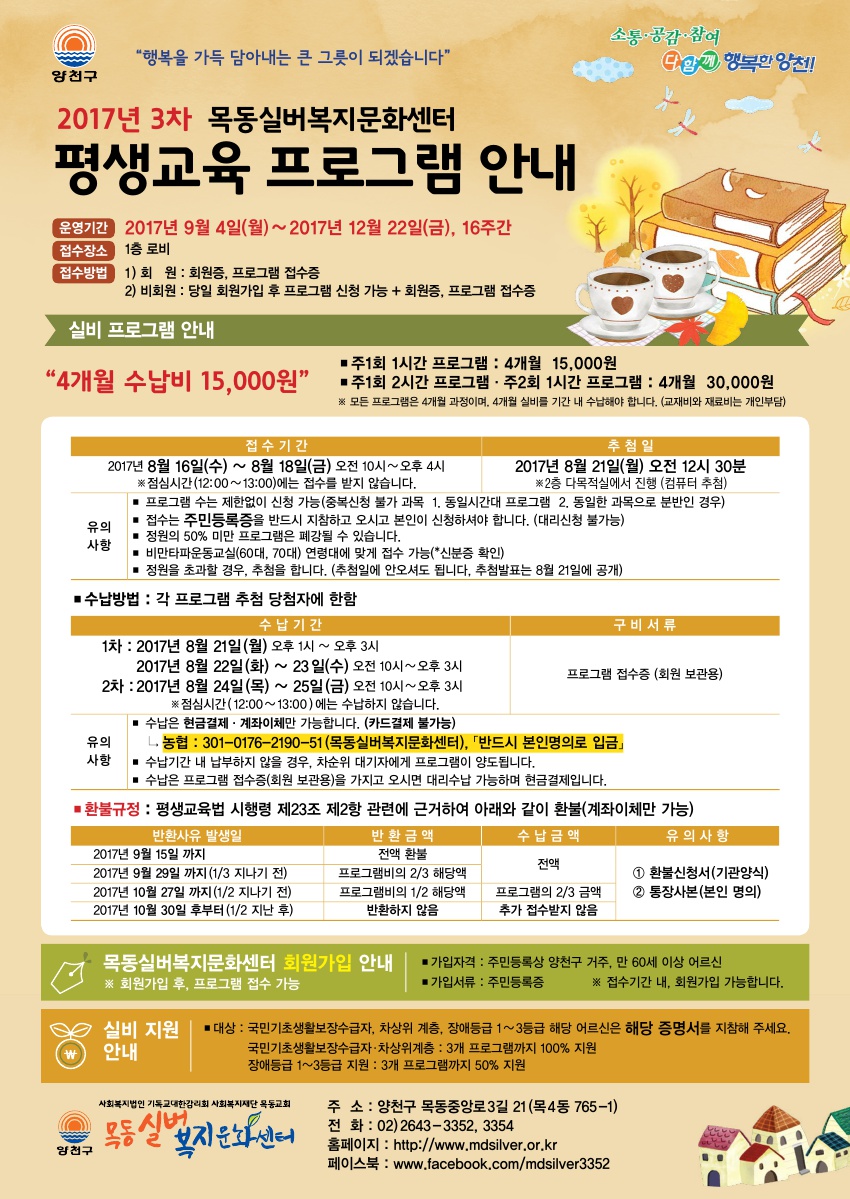 2017년 목동실버복지문화센터 3차 평생교육 프로그램 안내