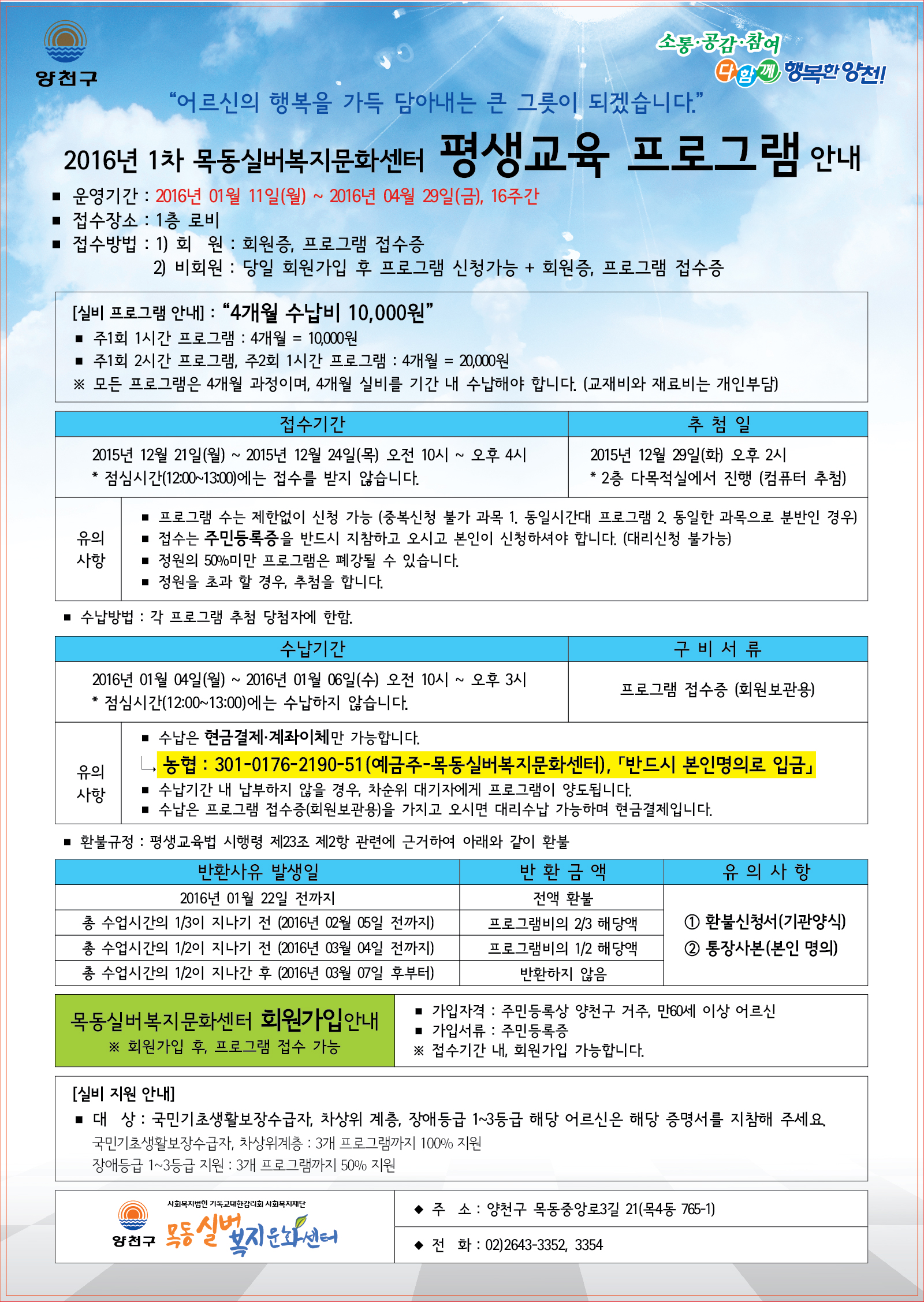 2016년 1차 목동실버복지문화센터 평생교육프로그램 안내