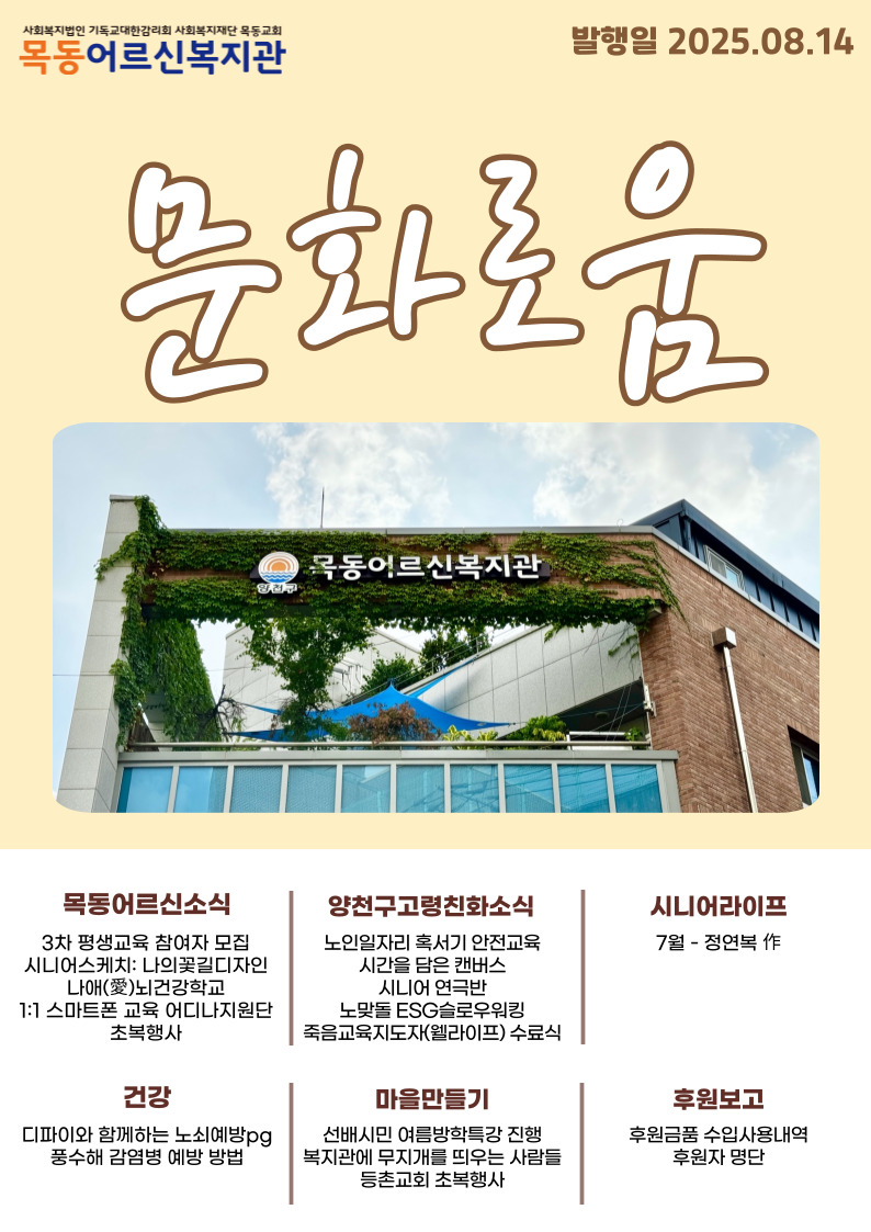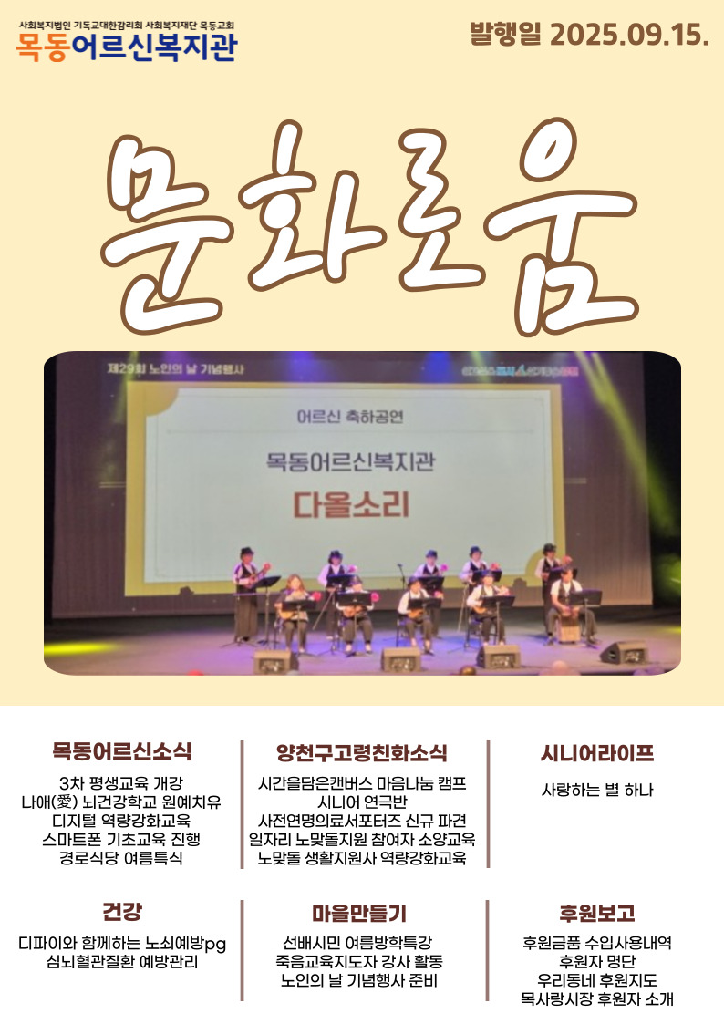 목동어르신복지관, 어르신 뇌 건강 증진 위한 '나애(愛) 뇌건강학교' 진행