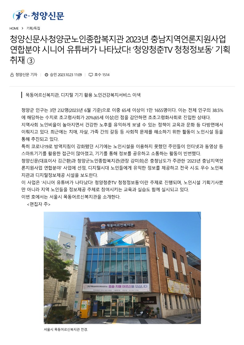 [청양신문] ‘청양청춘TV 청청정보동’ 기획취재