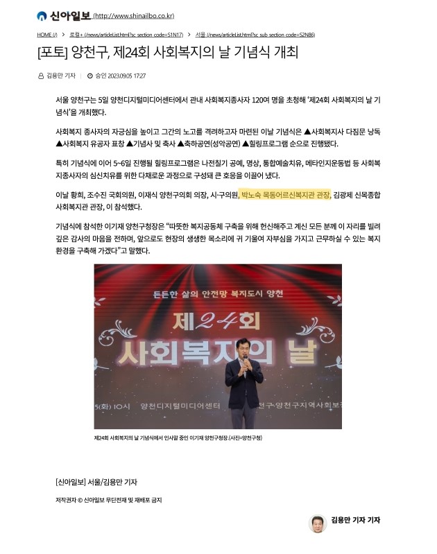 양천구, 제24회 사회복지사의 날 기념식 개최