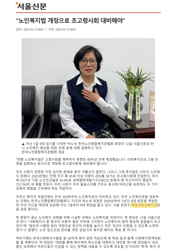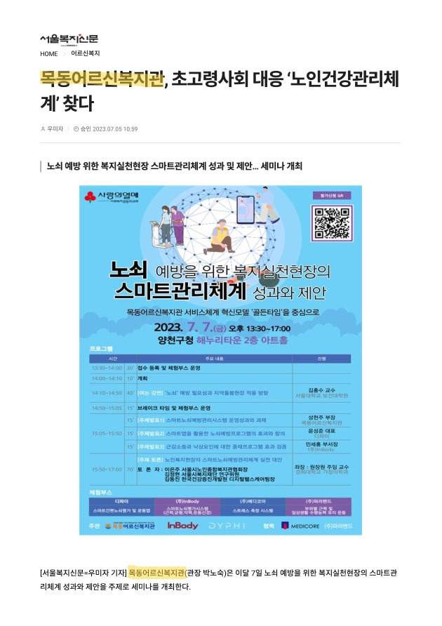목동어르신보지관, 초고령사회 대응 '노인건강관리체계' 찾다