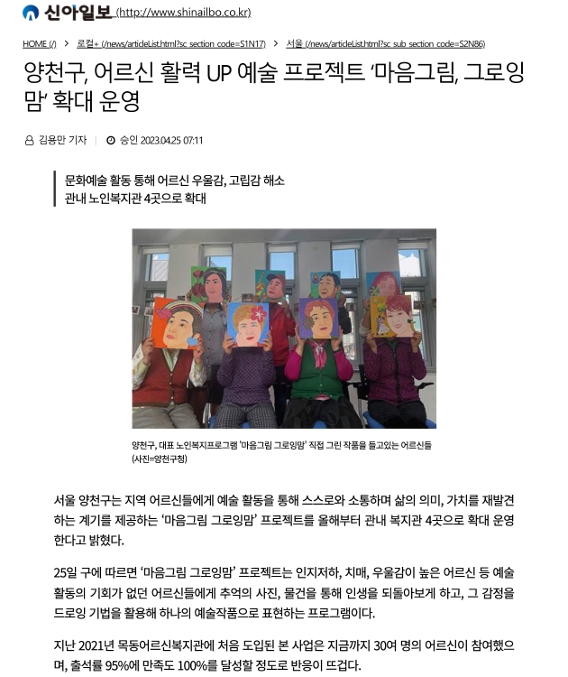 양천구, 어르신 활력 UP예술 프로젝트 '마음그림, 그로잉맘' 확대 운영