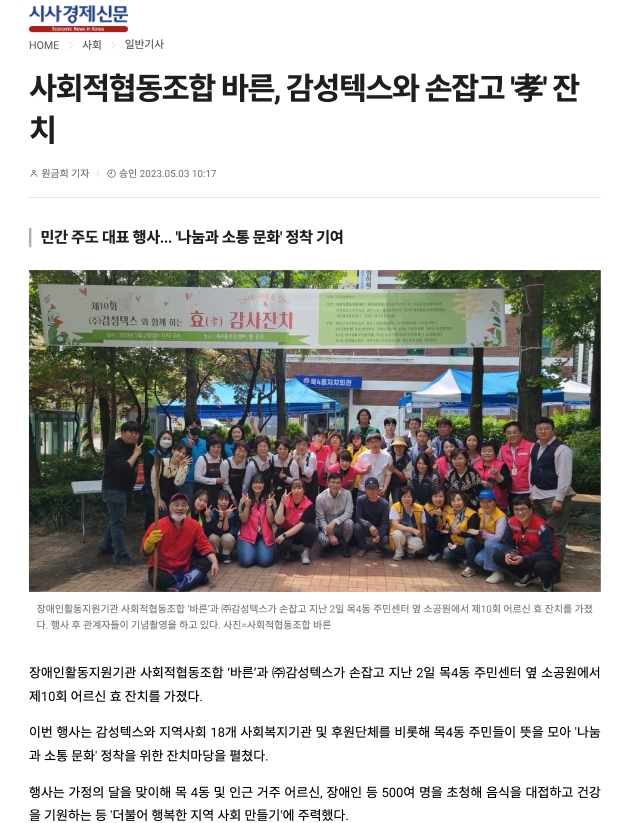 사회적협동조합 바른, 감성텍스와 손잡고 '孝'잔치