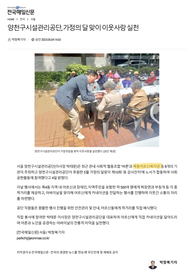 양천구시설관리공단, 가정의 달 맞이 이웃사랑 실천