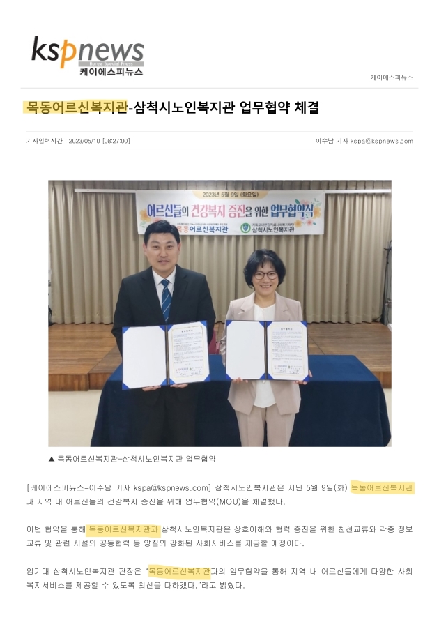 목동어르신복지관-삼척시노인복지관 업무협약 체결