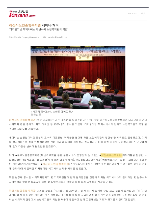 아산시노인종합복지관 세미나 개최