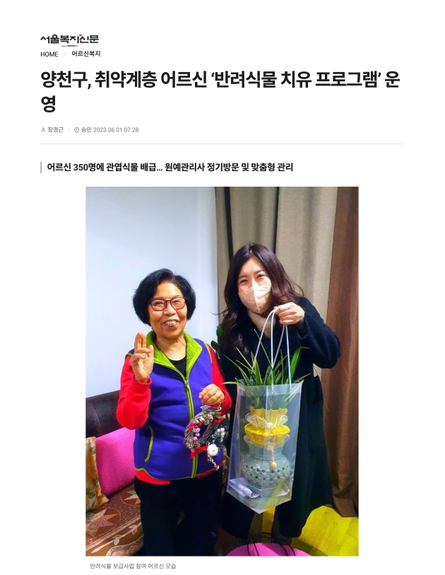 양천구, 취약계층 어르신 '반려식물 치유 프로그램' 운영