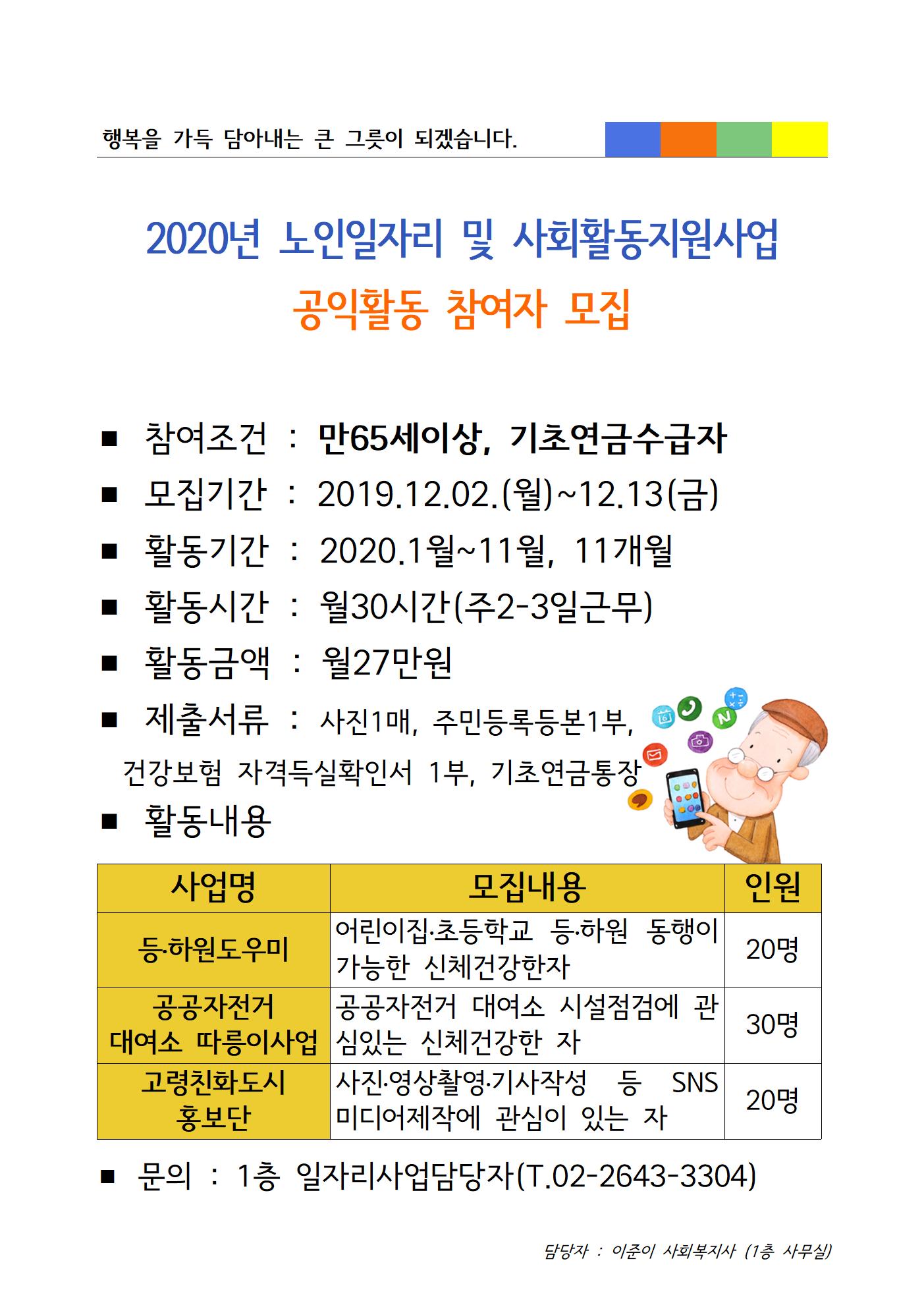 2020년 노인일자리 및 사회활동지원사업 공익활동 참여자 모집