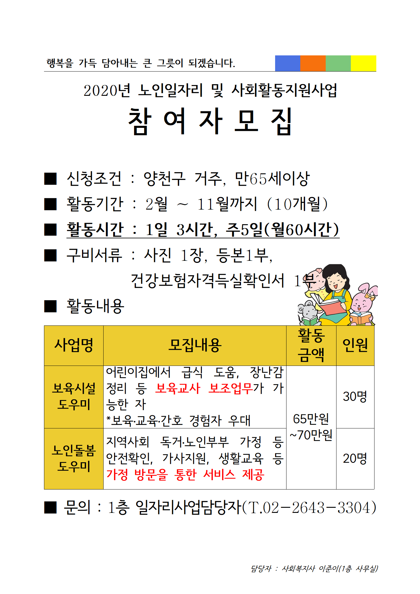 2020년 노인일자리 및 사회활동지원사업 사회서비스형 참여자 모집