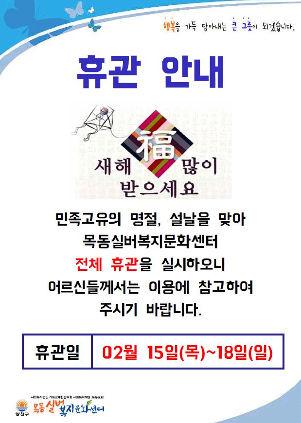 목동실버복지문화센터 휴관 안내