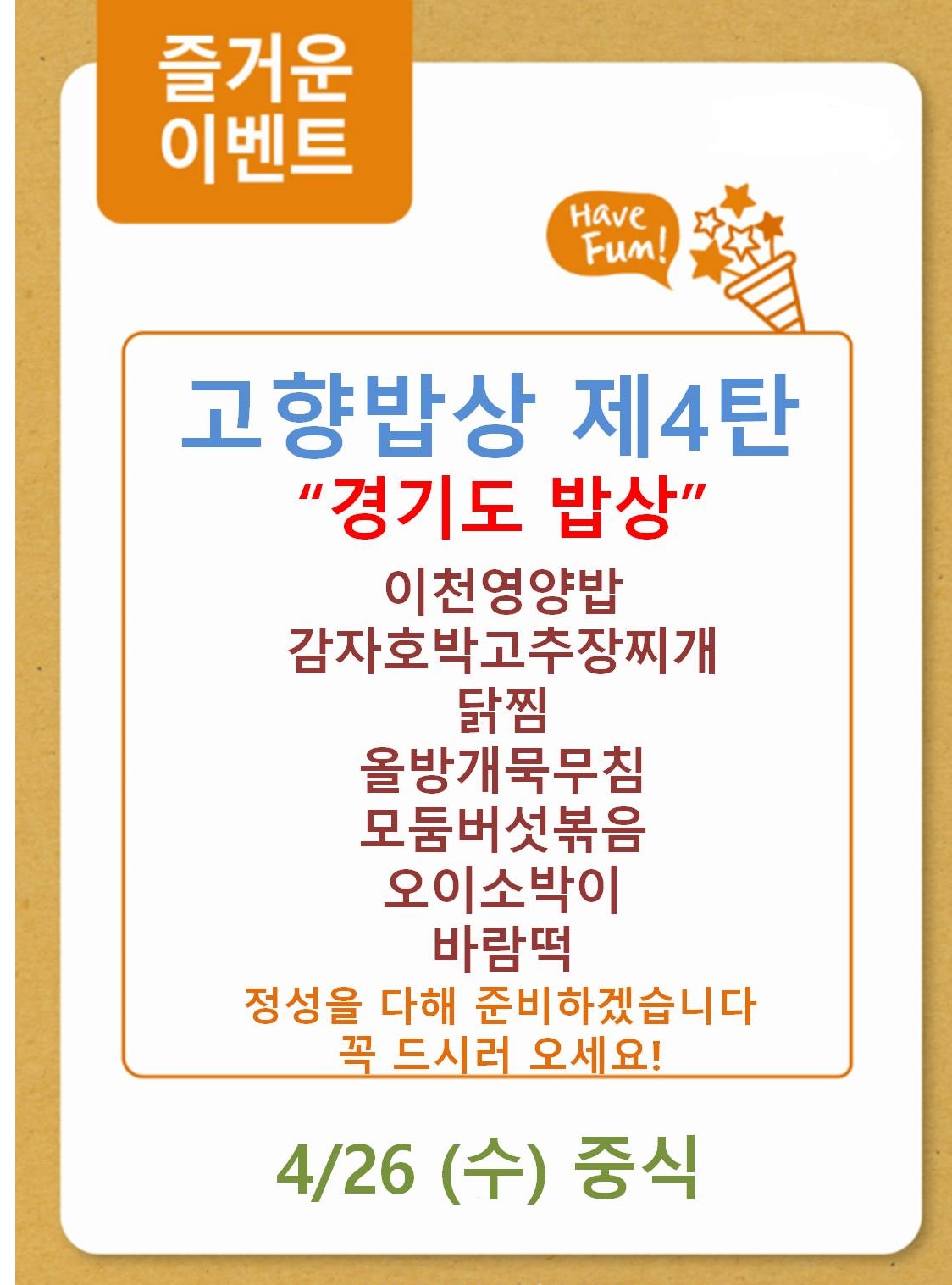 2017.04.26.(수) 고향밥상 제 4탄이 진행됩니다~!